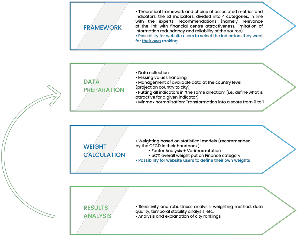 The ranking is based on statistical methods inspired by the OECD and especially their handbook ‘Handbook on constructing composite indicators’ that allows to: